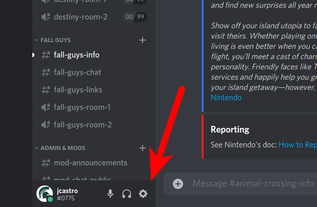 - Begin by clicking on the cog next to your Discord username in the lower left